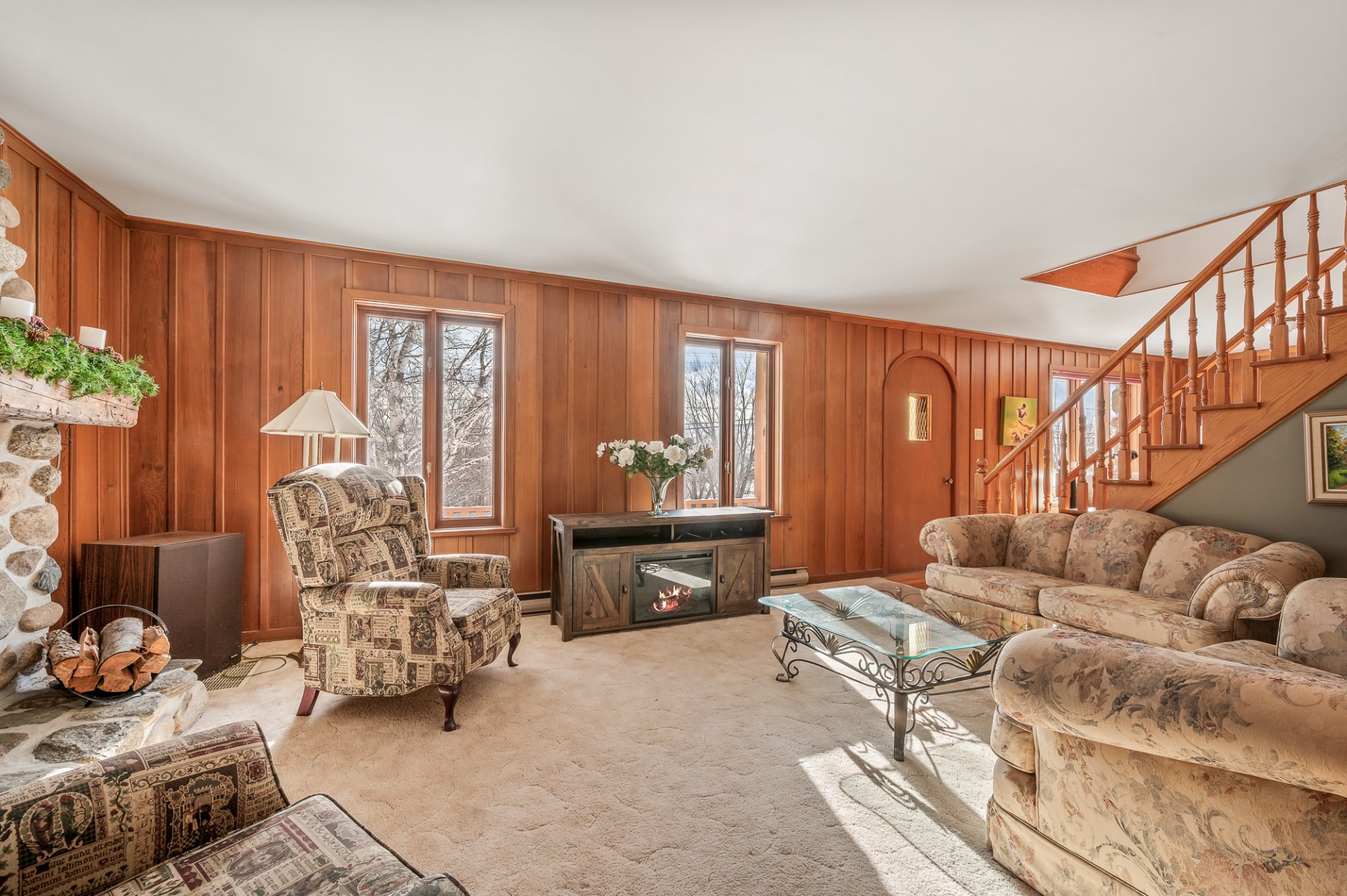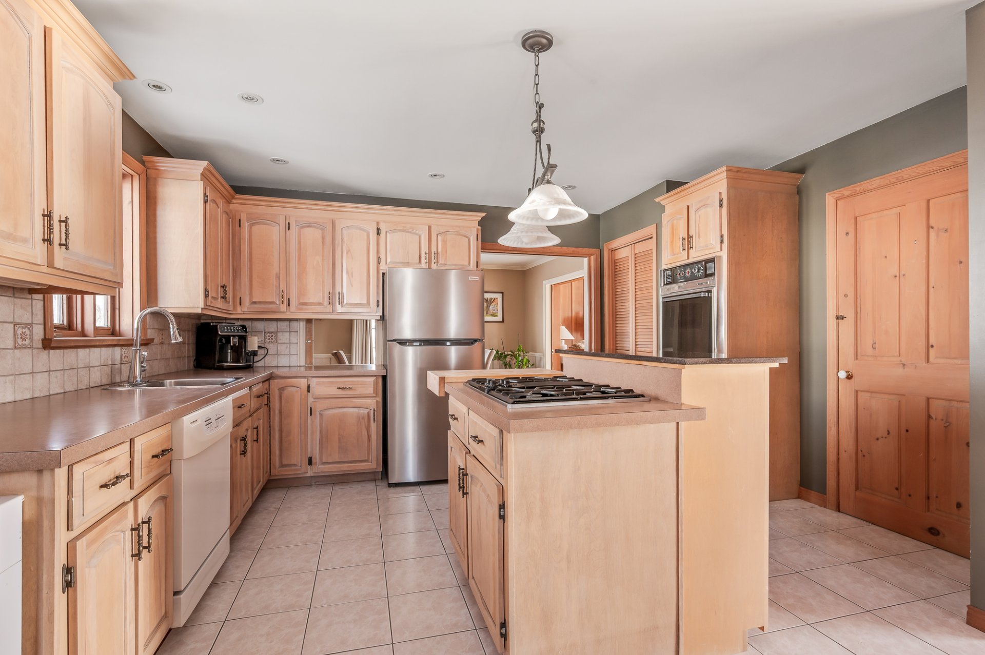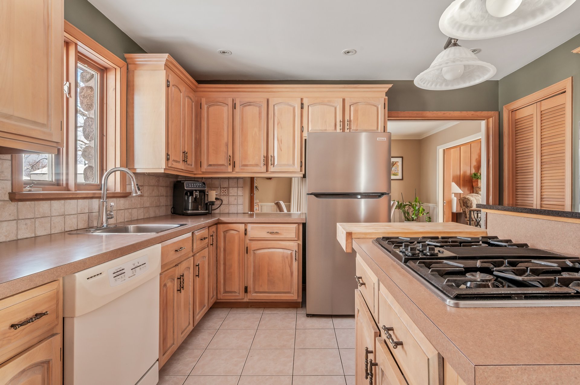 Luminaires, habillage de fenêtres, poêle à bois, congélateur, plaque à cuisson au gaz, four encastré
