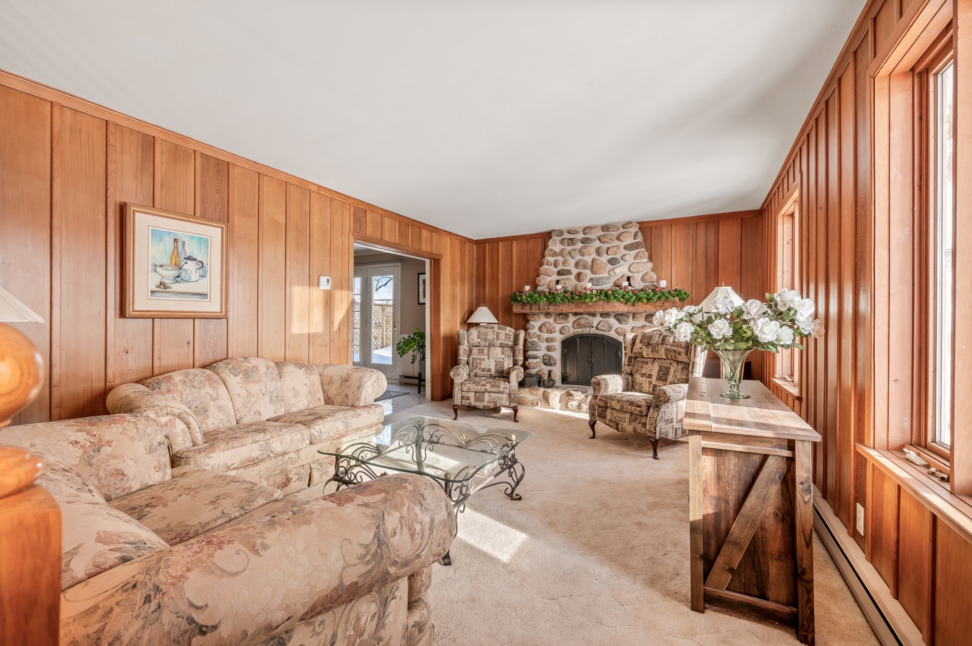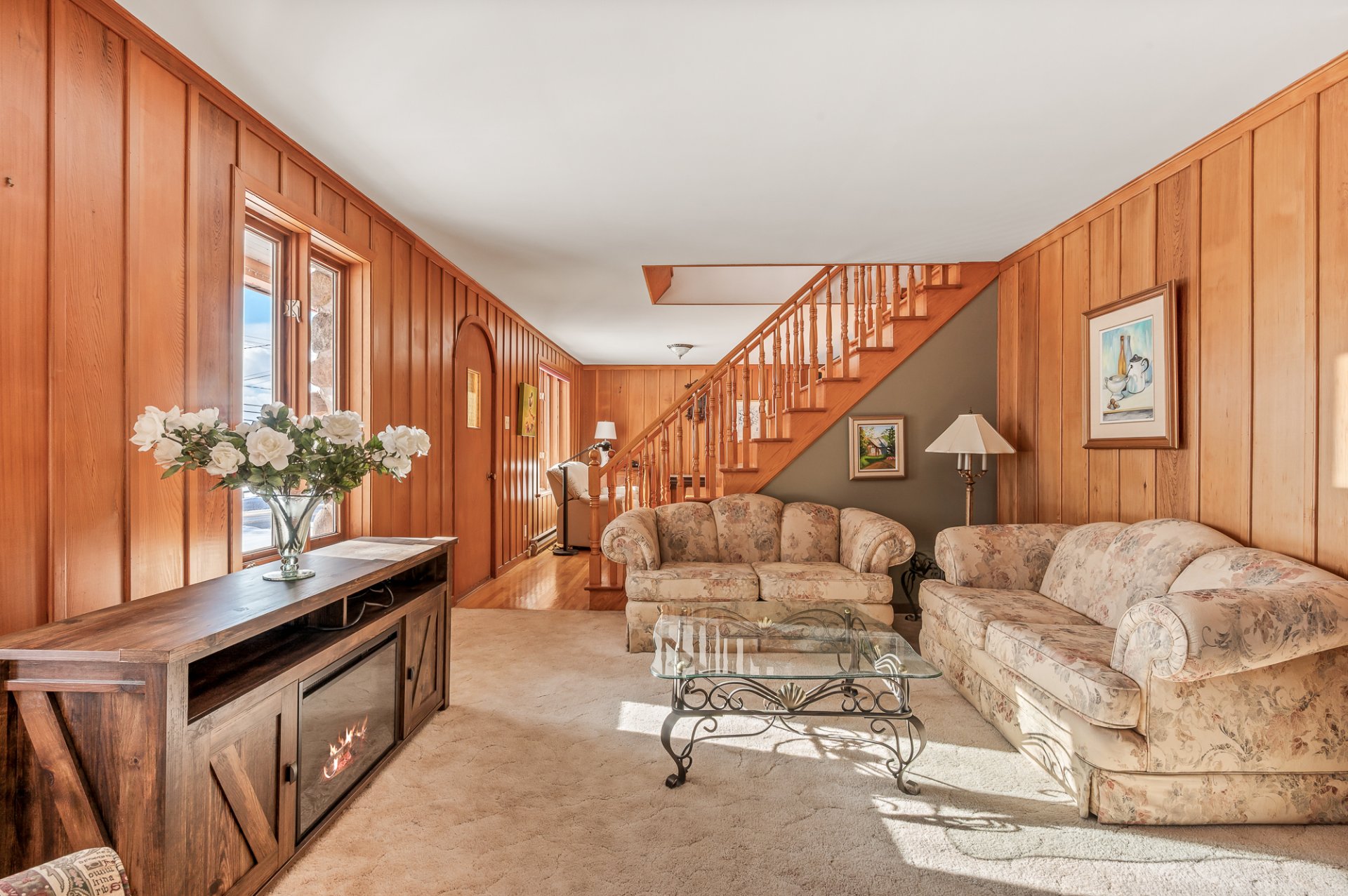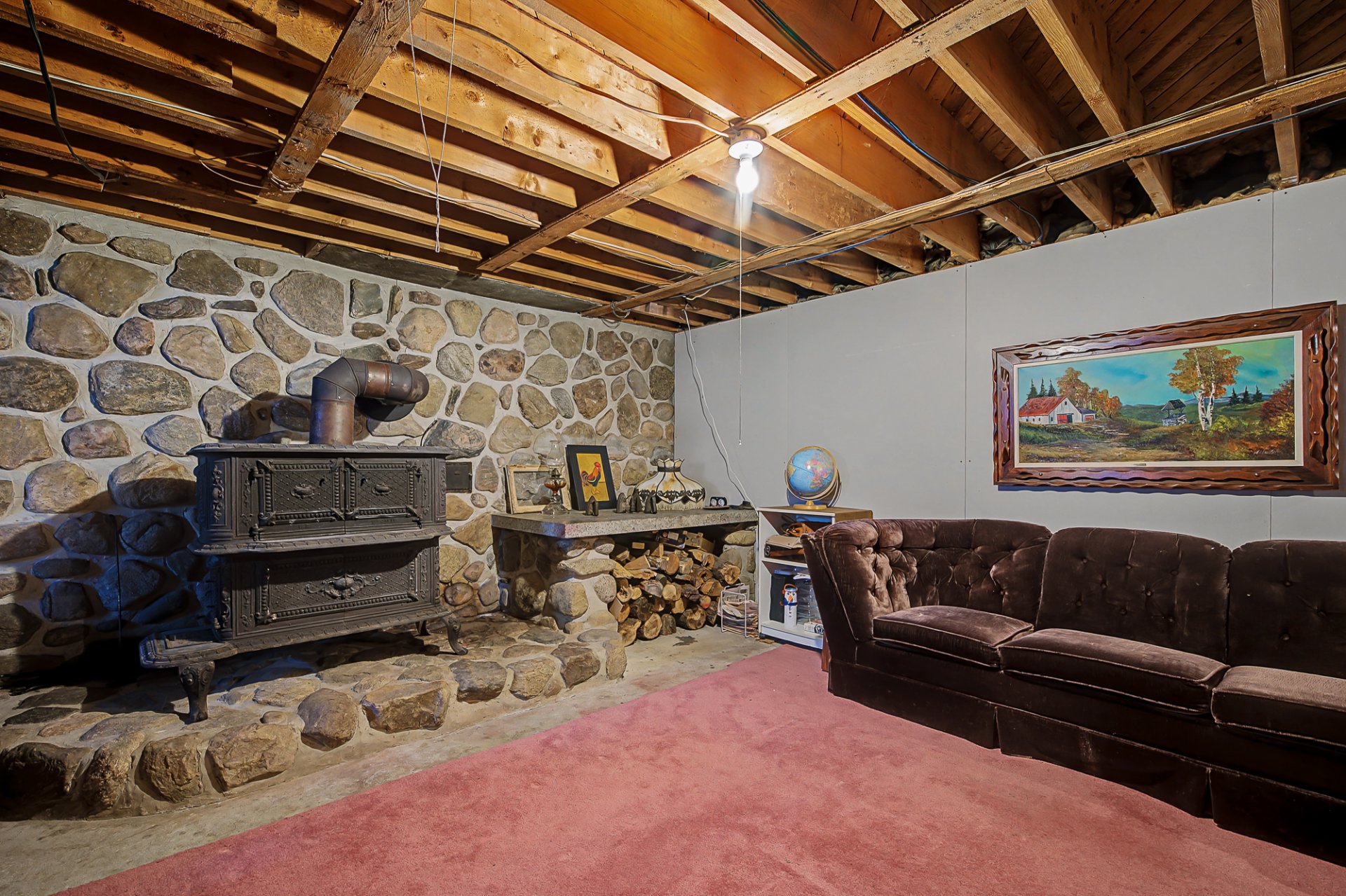 Luminaires, habillage de fenêtres, poêle à bois, congélateur, plaque à cuisson au gaz, four encastré