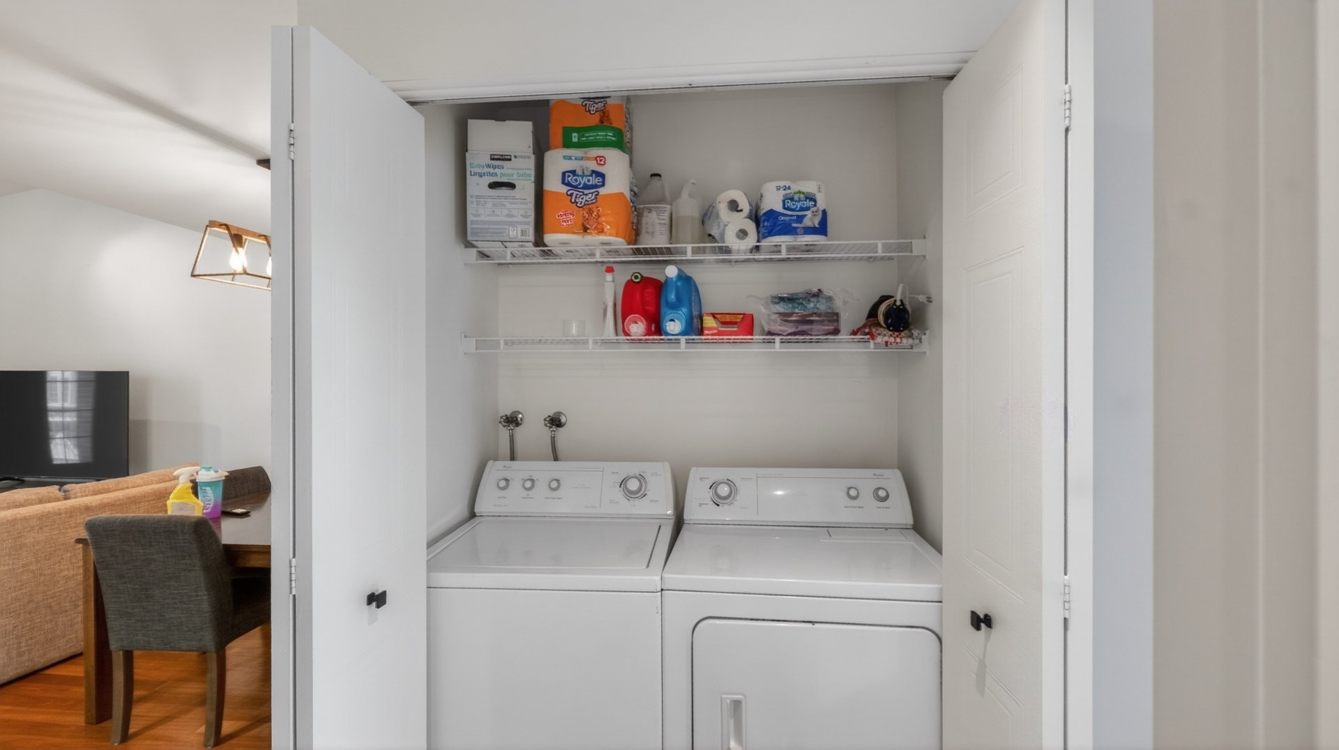 Luminaire de la salle à manger, laveuse sécheuse, réfrigérateur, cusinière, lave-vaisselle, bibliothèque, tous les biens et effet personnels des propriétaires.