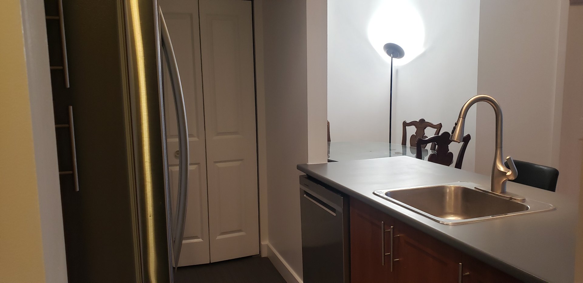Cuisine: Évier en acier inoxydable avec robinet mitigeur.