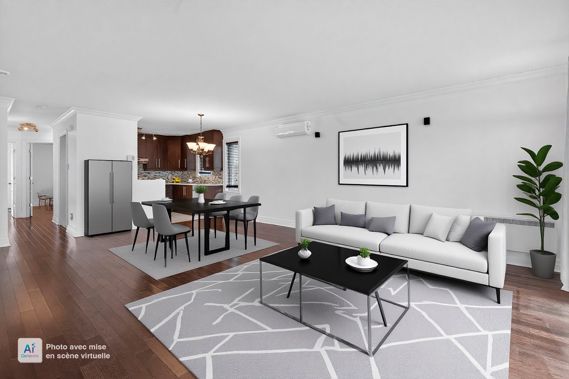 une aire de vie ouverte où salon et salle à manger se